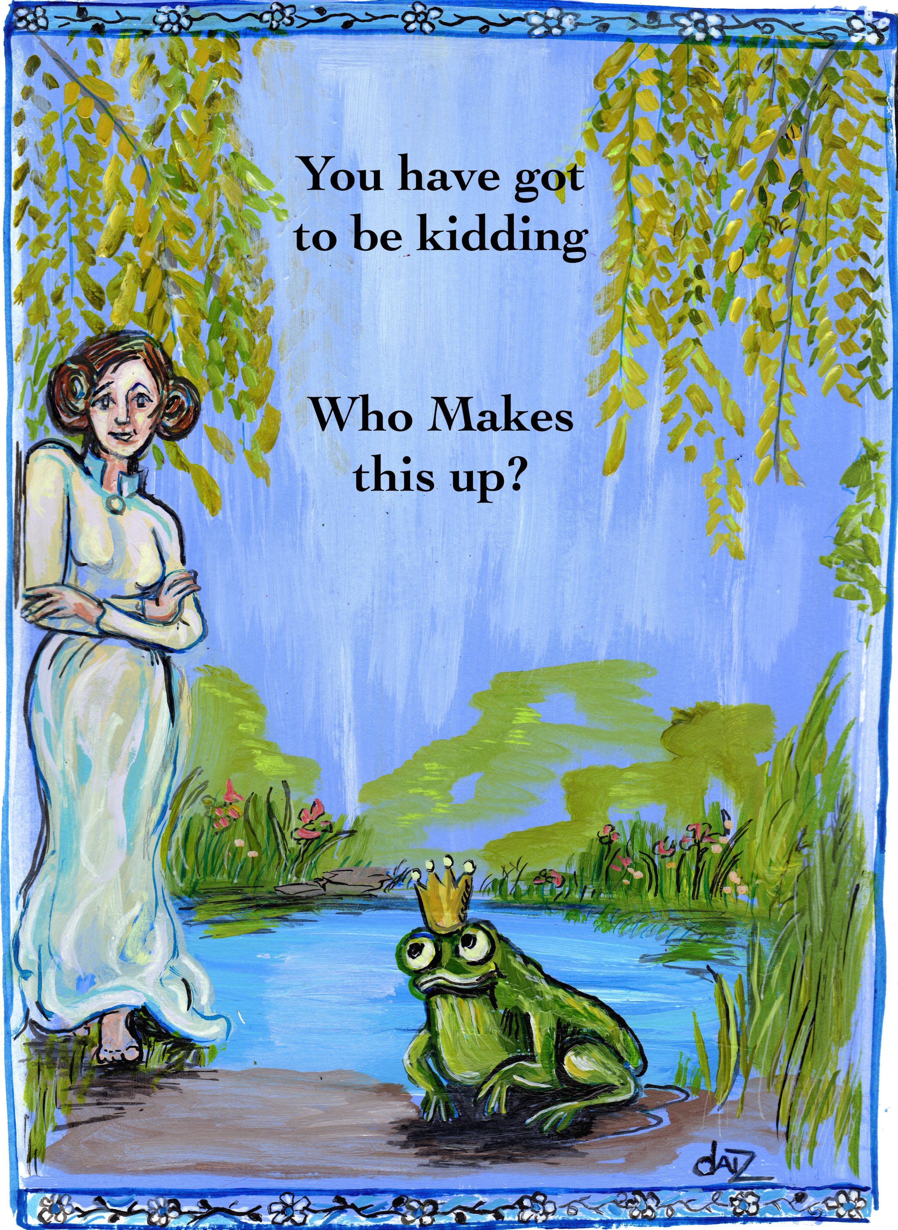 So I thought this about the frog prince and decided that No, I wouldn’t kiss a frog either. Why should I? Does this make me a bad princess or just a princess who realizes that these nasty little things spread germs. Seriously, gross.
