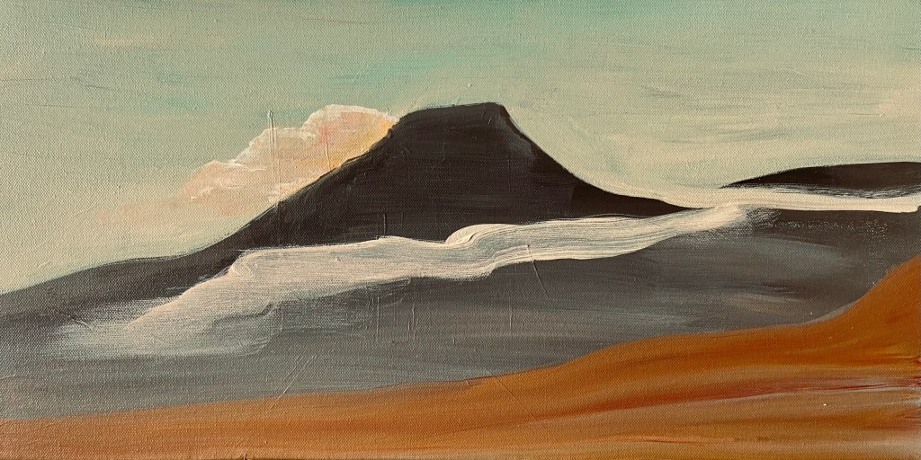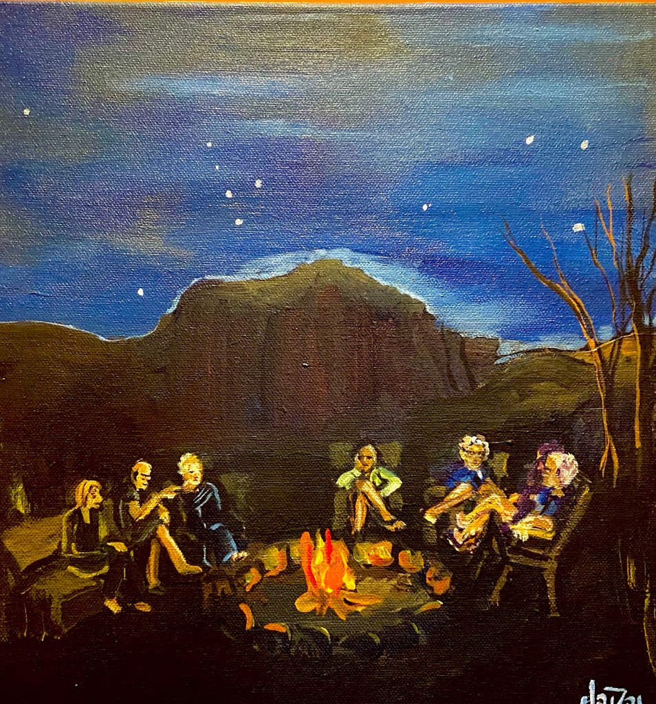 A night gathering was painted in the dark watching my fellow artists chat by the fire on the evening of the full moon, the Harvest moon of September 20th, 2021. We waited for the moon to rise over the mountain.. watching the glow of light grow upon its upper most crest. Magic.