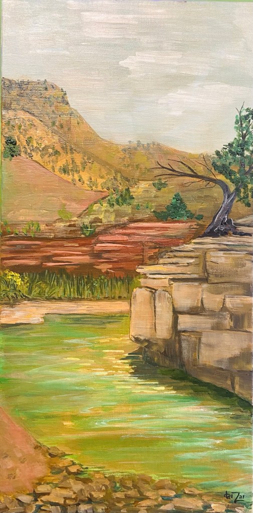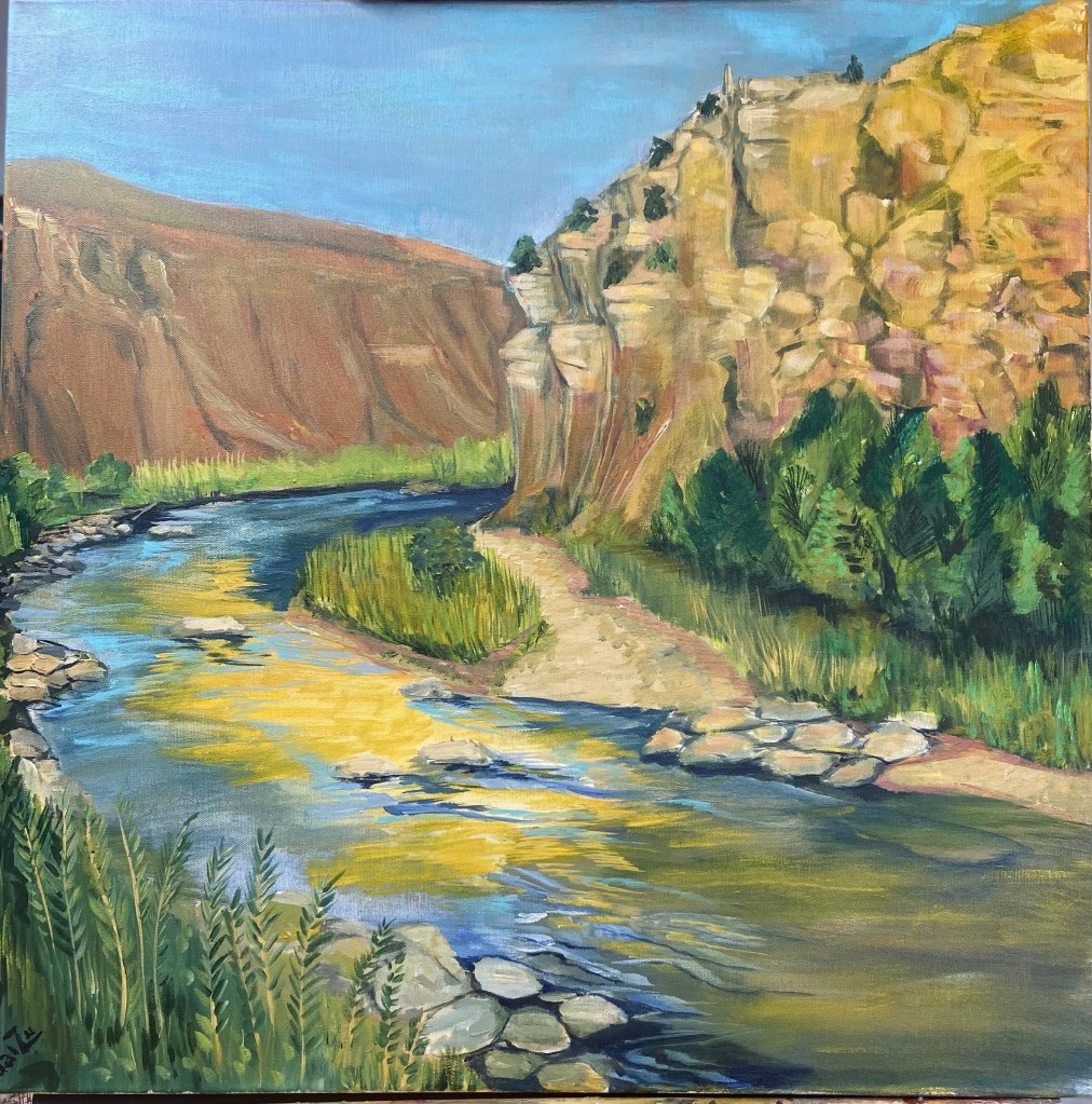 Arriving at the Rio Chama river just below the damn and north of the tiny town, Abiquiu, just after sun up. I was so charmed by the golden morning sun on the water. The constant ripple of the water on rocks the music of the morning.