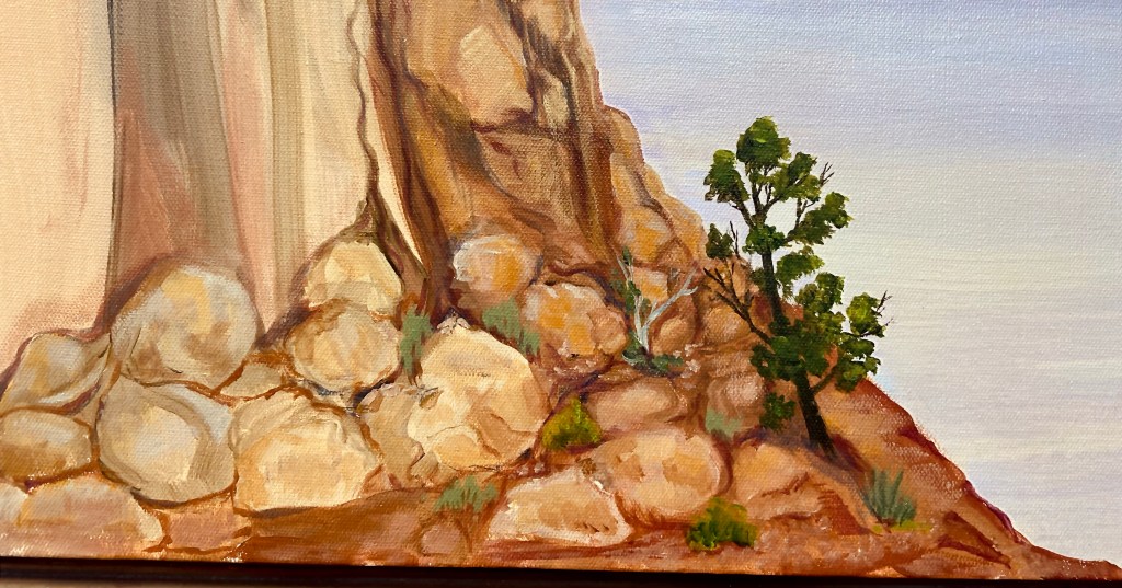This was the first piece I “finished” at the residency. I was so out of my element and both exhausted and exhilarated that I found myself sort of creatively frozen. This piece brought me back to myself as I began to find my own way to paint the mountains. A separate style and space